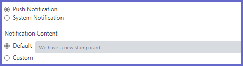 - Default: Uses the default message, "We have a new stamp card" as the notification text