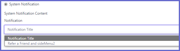 - A dropdown field with options of all available Notification setups in Myplace Backpanel