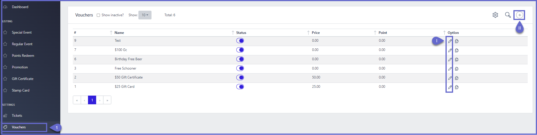 - Choose between the Add icon, to create a new voucher and Edit icons, to update existing ones
