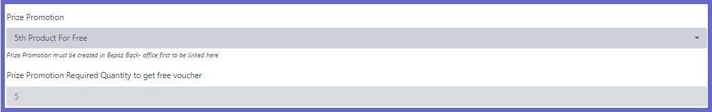 - When an option is selected then the 'Prize Promotion Required Quantity' field will automatically update using the Required Qty value from the promotion in Bepoz