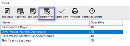 - The views can be deleted by clicking on the "Delete View" Option in the View Maintenance window