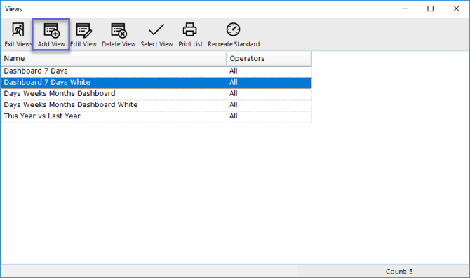 - Click on the Views icon from the Dashboard Menu bar and then press the "Add Views" option