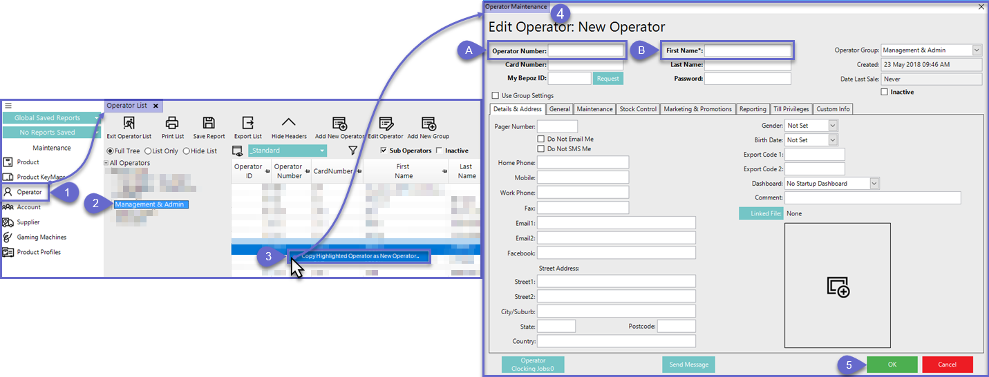 - When adding New Operators in BackOffice, it will always be easiest to copy an existing Operator, whenever possible