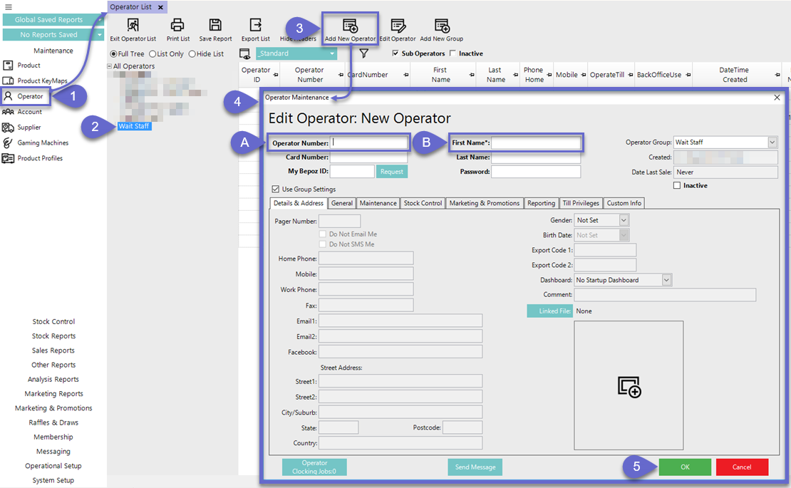 Operators are the users who will need to log in to Bepoz whether that is at a SmartPOS or BackOffice Workstation