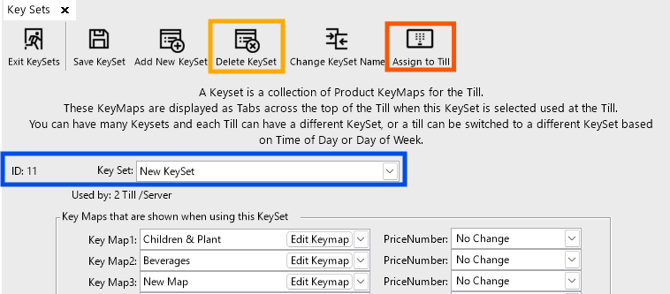 If required, KeySets can be deleted within the Product KeyMaps Menu. A KeySet cannot be deleted if it is currently assigned to a SmartPOS Workstation.