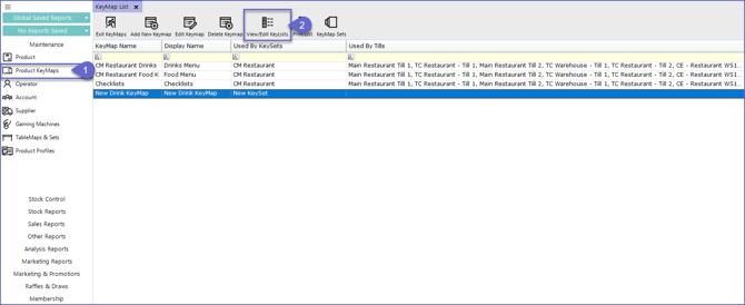 - This will now open the KeyList Items List window where Operators can Add, Edit and/or Remove the Products