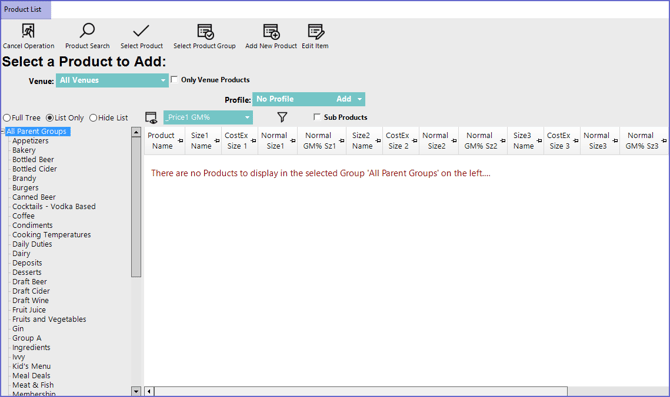 - This will now open the KeyList Items List window where Operators can Add, Edit and/or Remove the Products
