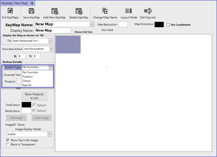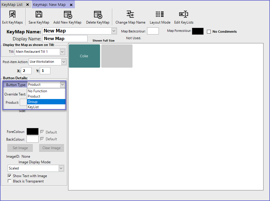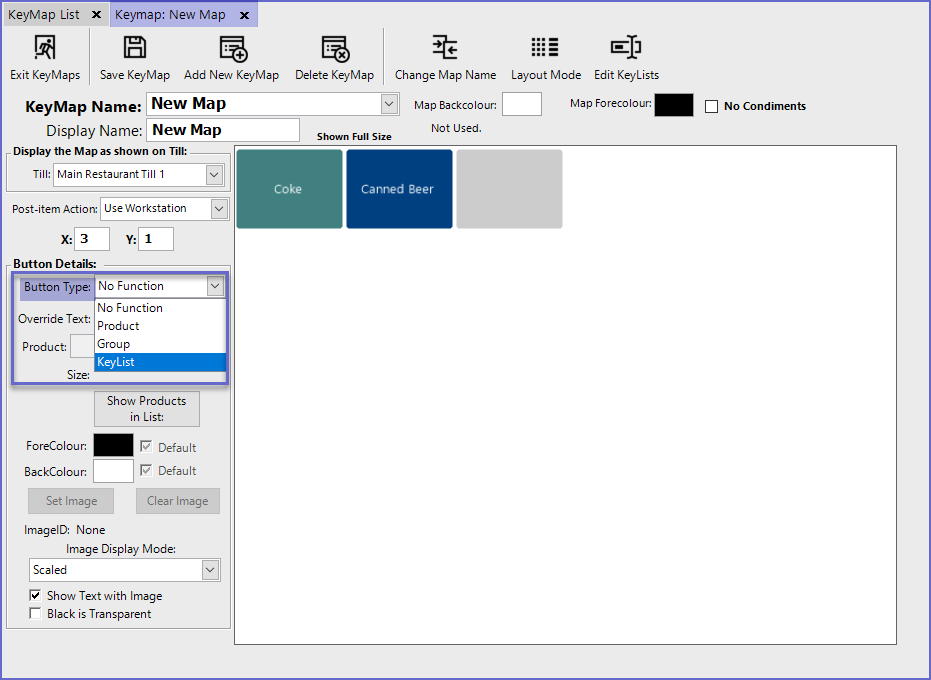 KeyMaps can contain three different types of buttons - Product, Group, or KeyList.
