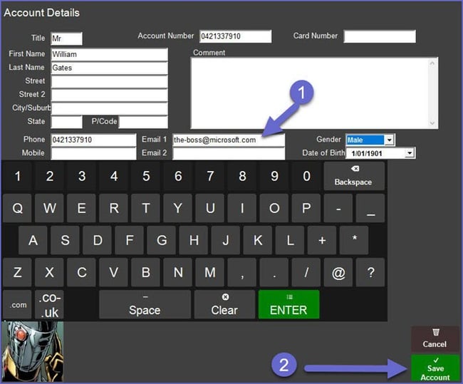 Operators can typically email any customer as long as they add an account with an email address, before printing the receipt