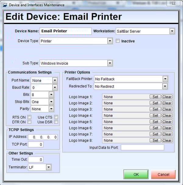 The only settings here used are: Sub Type, Fallback Printer, And Redirected To (but do not use), Logo Images