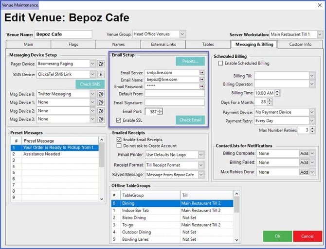 In addition to ensuring that the Venue will be setup properly to send Emails, Operators will also need to configure the Account Settings for the Accounts they would like to send Emails to