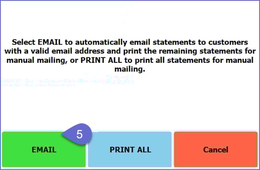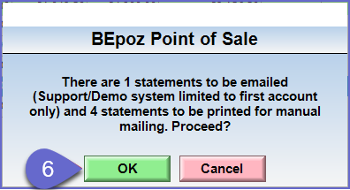 Operator will then receive a Prompt displaying the number of Statements which will be Emailed, and the number of which will be Printed for Manual Mailing