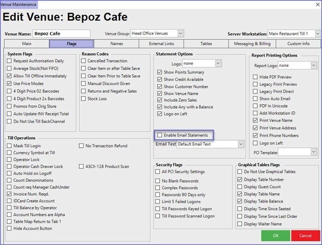 In the Flags Tab, ensure that the Enable Email Statements flag has been enabled