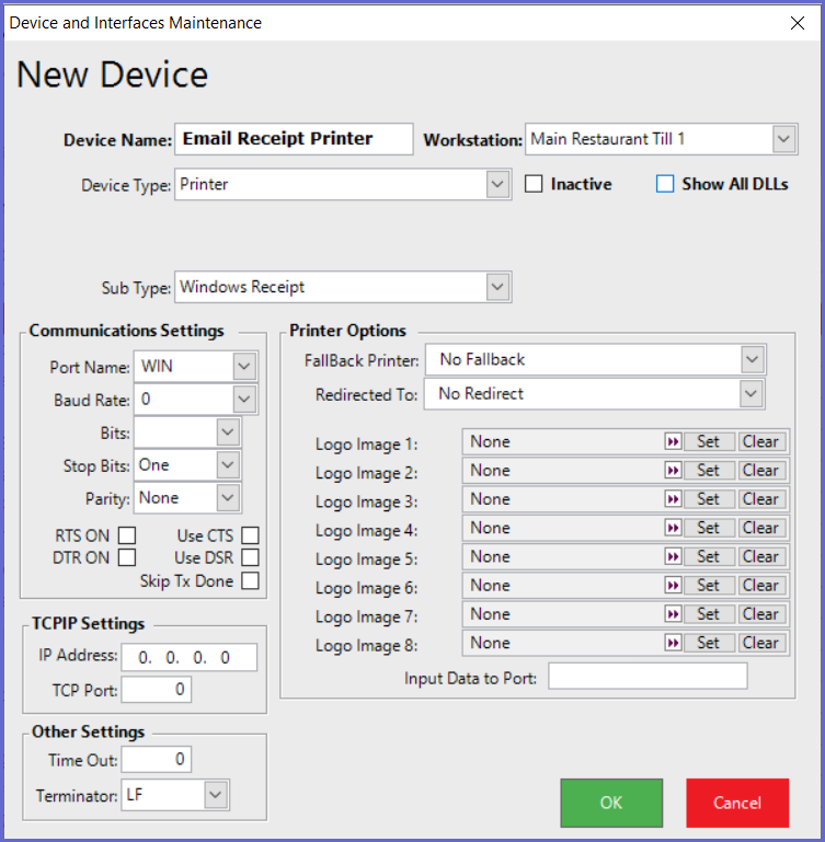 - Type should be Windows Invoice and Port Name should be WIN