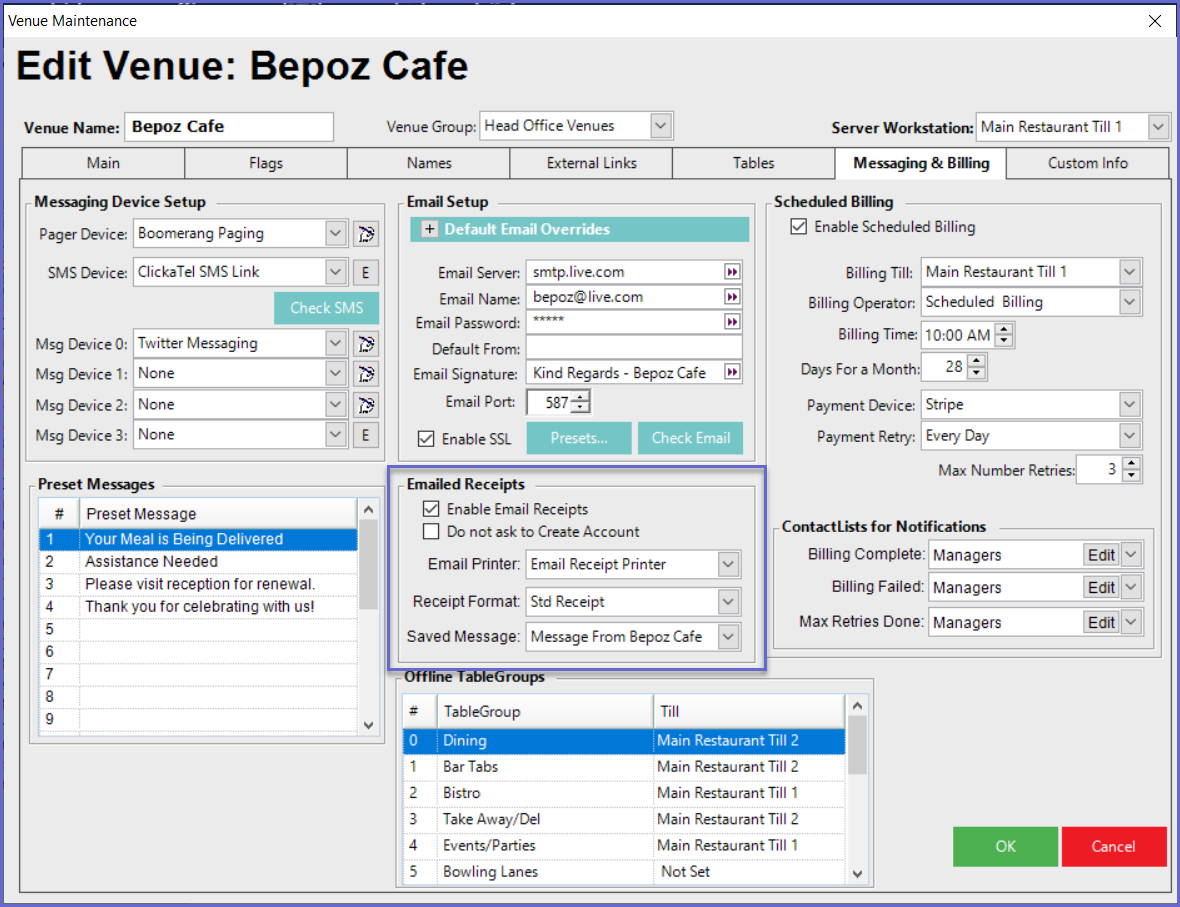- Email Receipts needs the Messaging Module Authorised and activated. Contact your Account Manager