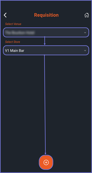 • This will open the Requisition home screen, proceed to select a Venue and Store to create a Requisition for