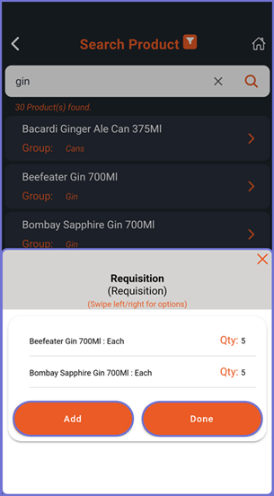 • To view all the products added within the Requisition, click on the 'List' button on the bottom which brings up a modal pop-up window displaying all the products within that Requisition