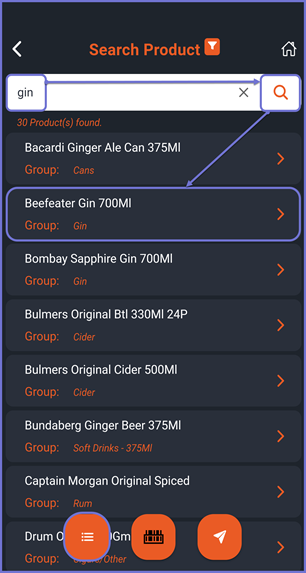 • Proceed and search for a desired product by typing the product name or by using the mobile Barcode Scanner option at the bottom of the screen