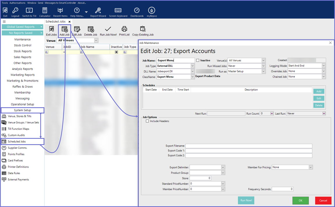 Operator Maintenance 'General' Tab - System Setup: "Maintain Scheduled Jobs" Flag