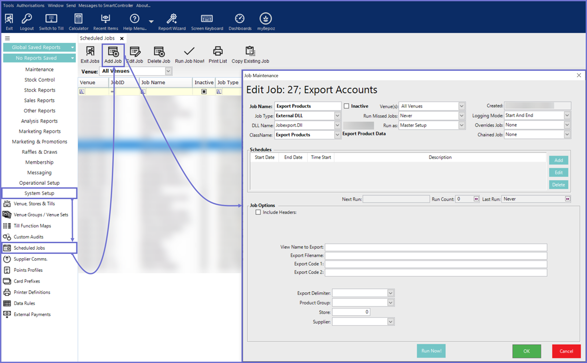 Operator Maintenance 'General' Tab - System Setup: "Maintain Scheduled Jobs" Flag