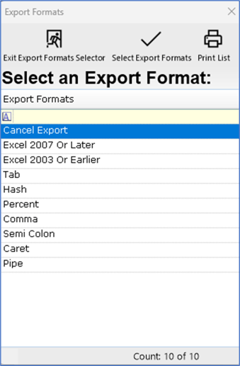 2. Select an Export Format [Highlight and Select Export Format or Double click one to select]