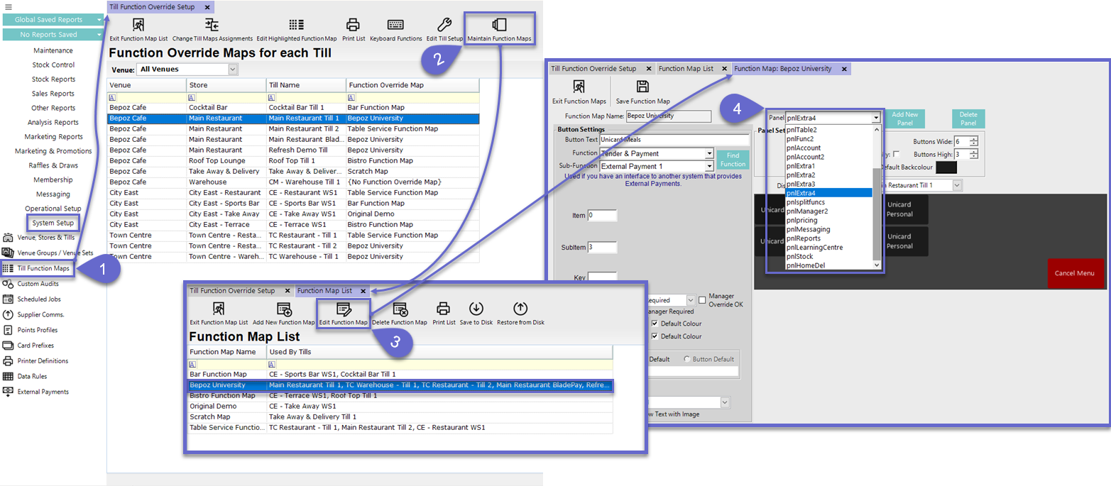 - Navigate to the System Setup component in the sidebar menu and select Till Function Maps which will open the Till Function Override Setup Tab
