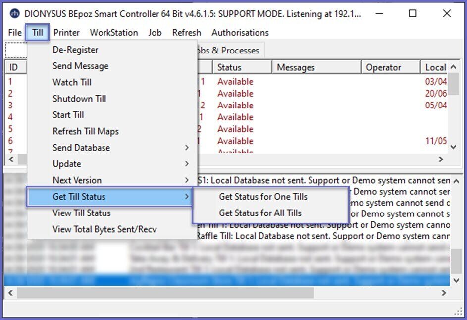This article explains the "Get Till Status" and the "View Till Status" menu options within the "Till" menu on SmartController. These two menu options work together by first using the "Get Till Status" option to retrieve the Version Waiting Data for the Till/s and then using the "View Till Status" option to display that data.