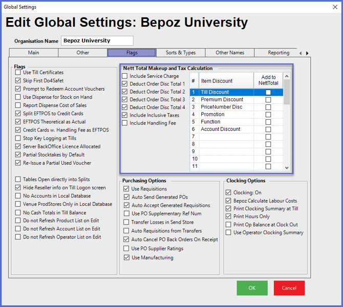 - These flags determine how the Nett Total that is Reported is composed and how Tax is Calculated