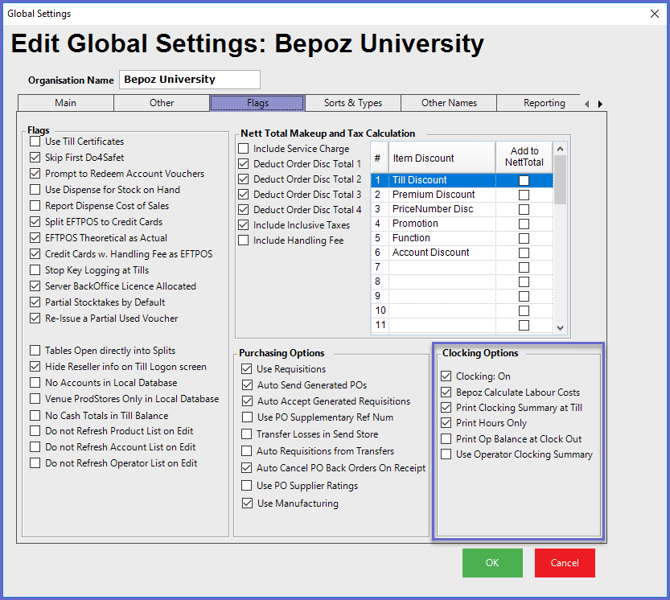 - These flags should only be configured once at an installation stage & by a qualified/trained Bepoz Operator