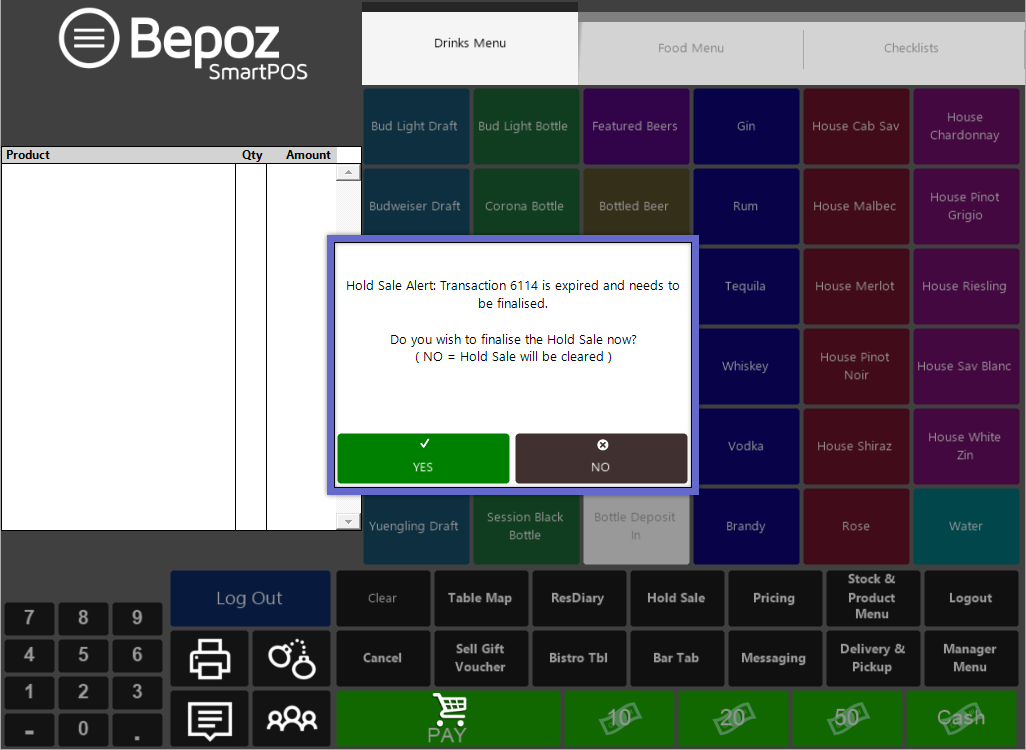 - If SmartPOS is performing another Transaction at the time of the Hold Sale Expiration, the Alert will not appear until the other Transaction is complete