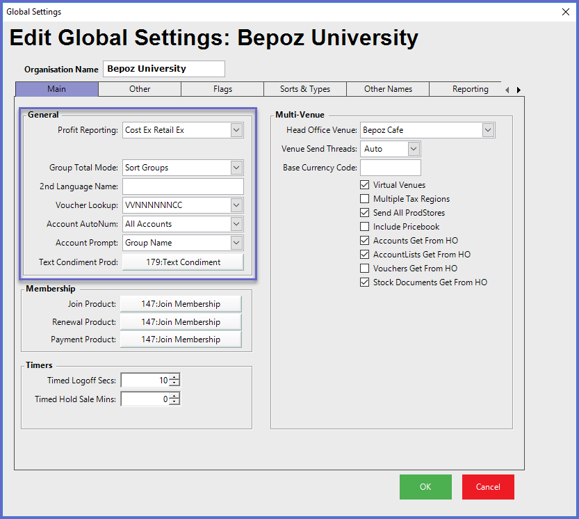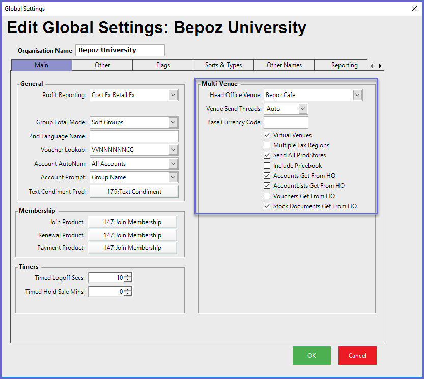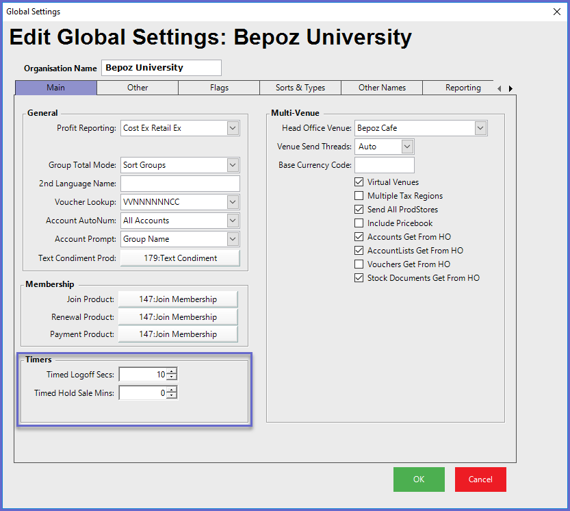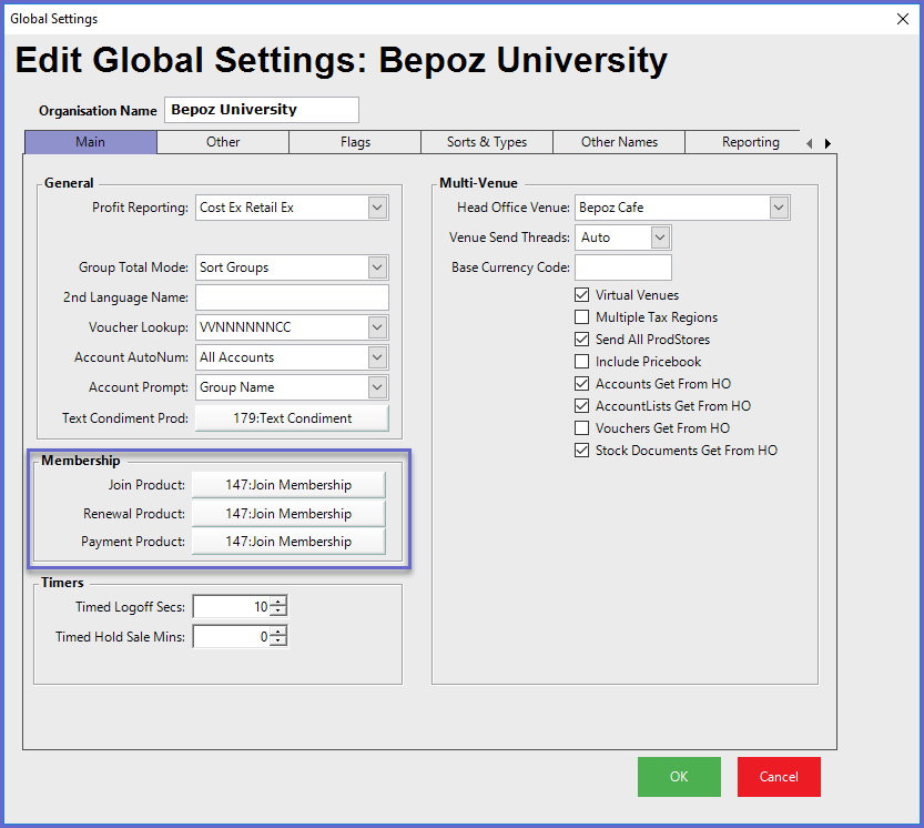 This article focuses on the "Main" Tab of Global Settings which covers General, Membership, Multi-Venue, and Timers settings.
