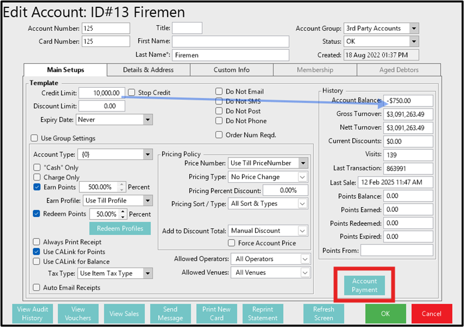 Scenario 1 - The Firemen have used some of their Account Credit limit and need to pay it off.