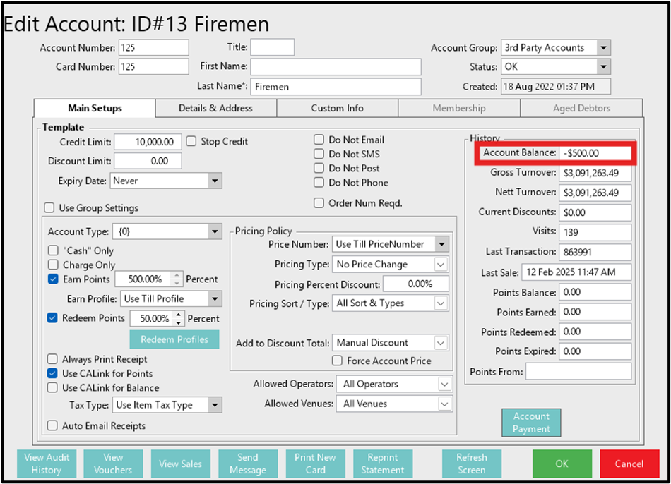 As you can see they have spent $750 of their $10,000 Credit Limit and their Account Balance is -$750