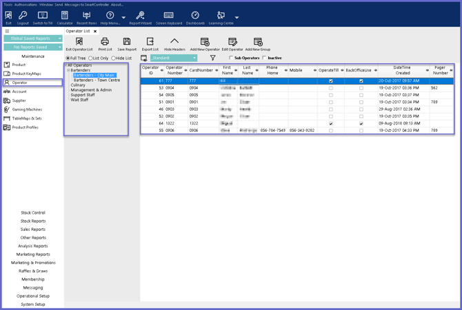 Operators are the users that will be accessing Bepoz and will carry out the functionality and business day-to-day Operators. The Operator List is structured through a tree-like setup with numerous groupings for stemming into other groups to keep likes with likes.
