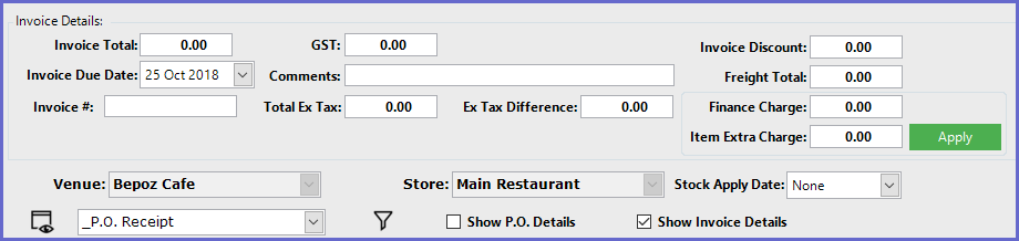 This article covers the Invoice Header Detail Configurations for Purchase Orders in BackOffice.