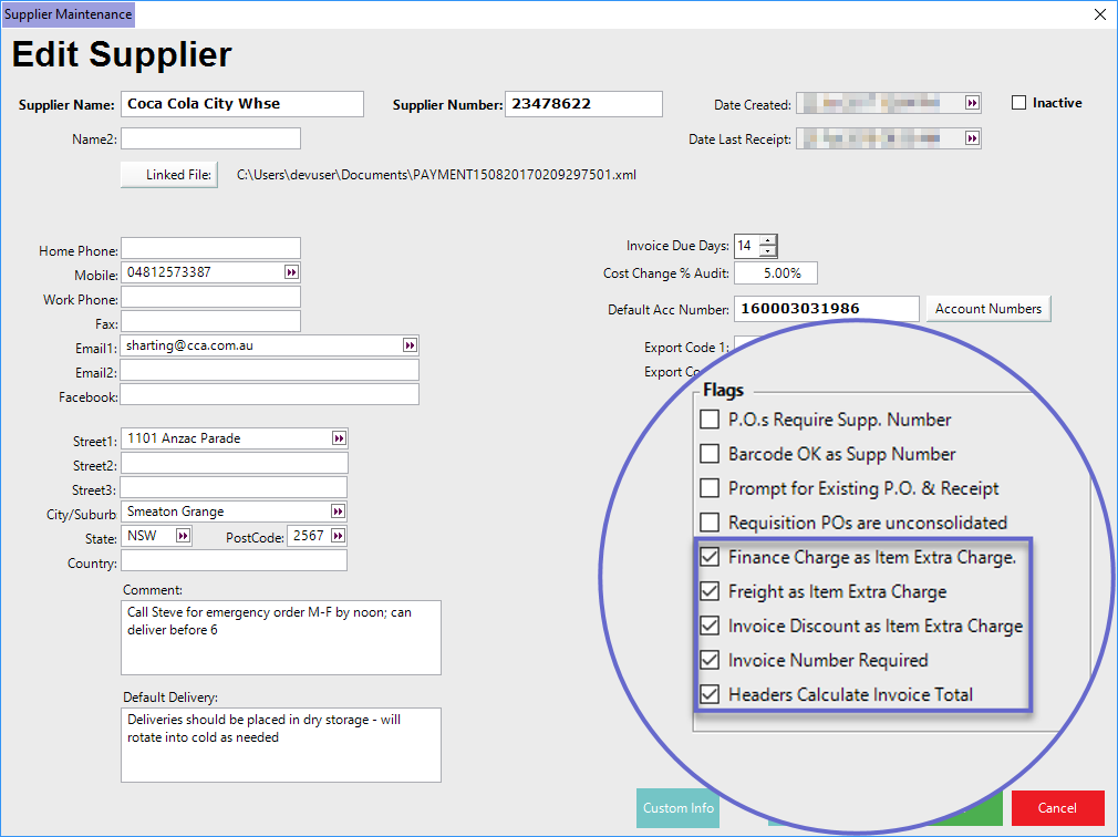 - When the Finance Charge as Item Extra Charge flag is disabled for a Supplier, then when Receiving Purchase Orders for that Supplier any Finance Charge added will not be treated as an Item Extra Charge