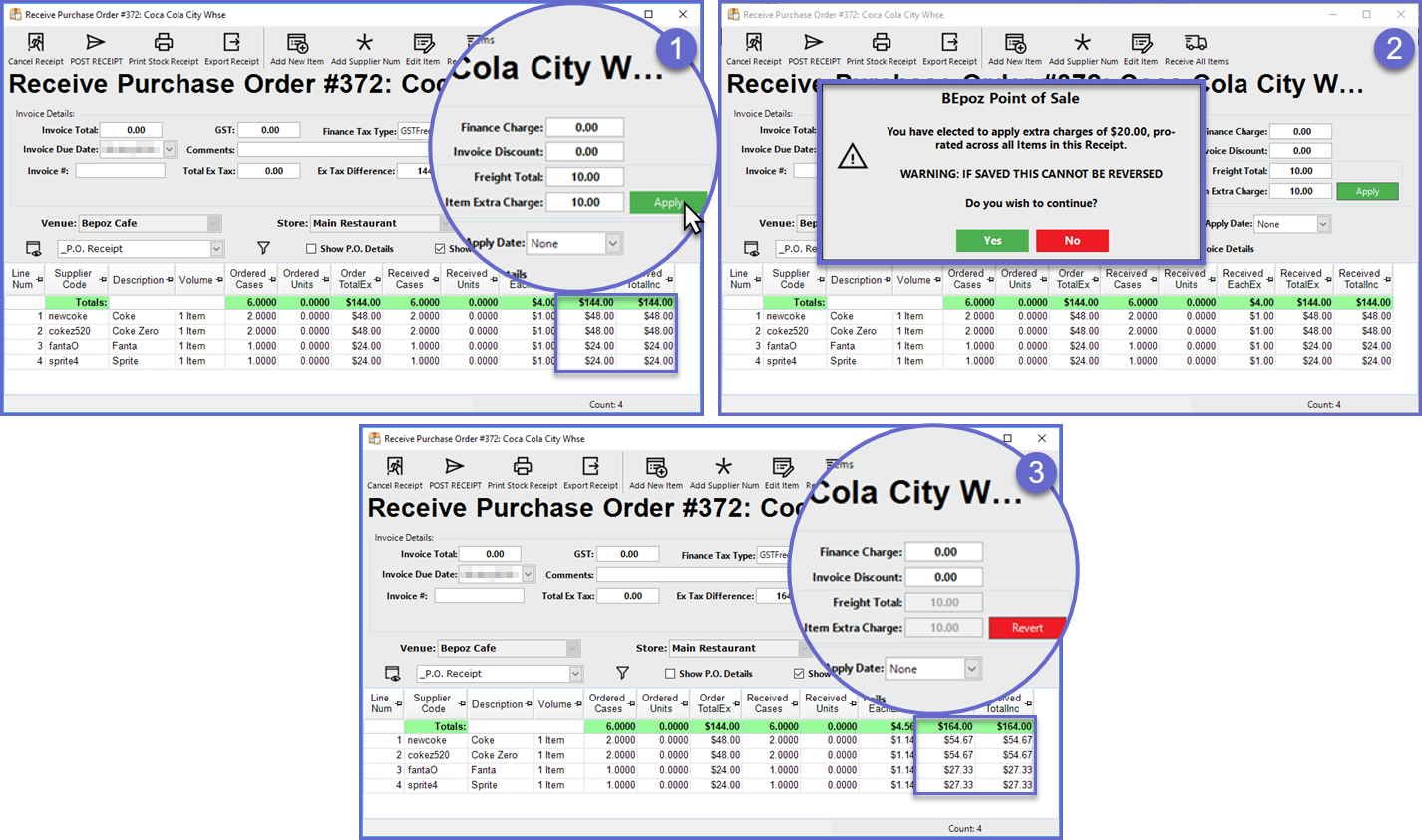 - The Total Amount of any Freight Charges plus (+) Item Extra Charges will then be pro-rated amongst the Products in the Receipt