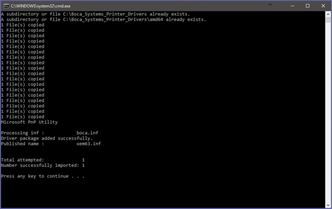 Operators will need to install the drivers with the Administrator user, right click boca_printer_drivers.exe and select 'Run As Administrator'