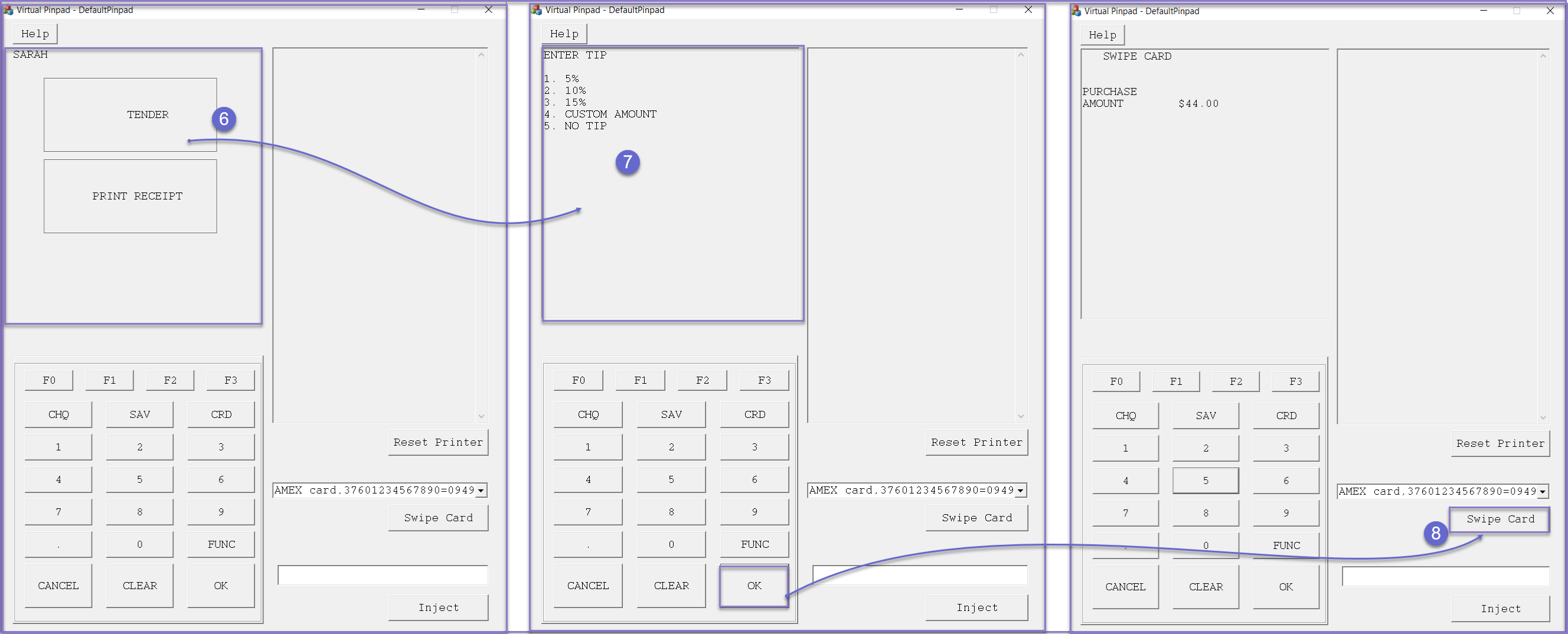 - Two options are displayed on the PINPad: Tender and Print Receipt