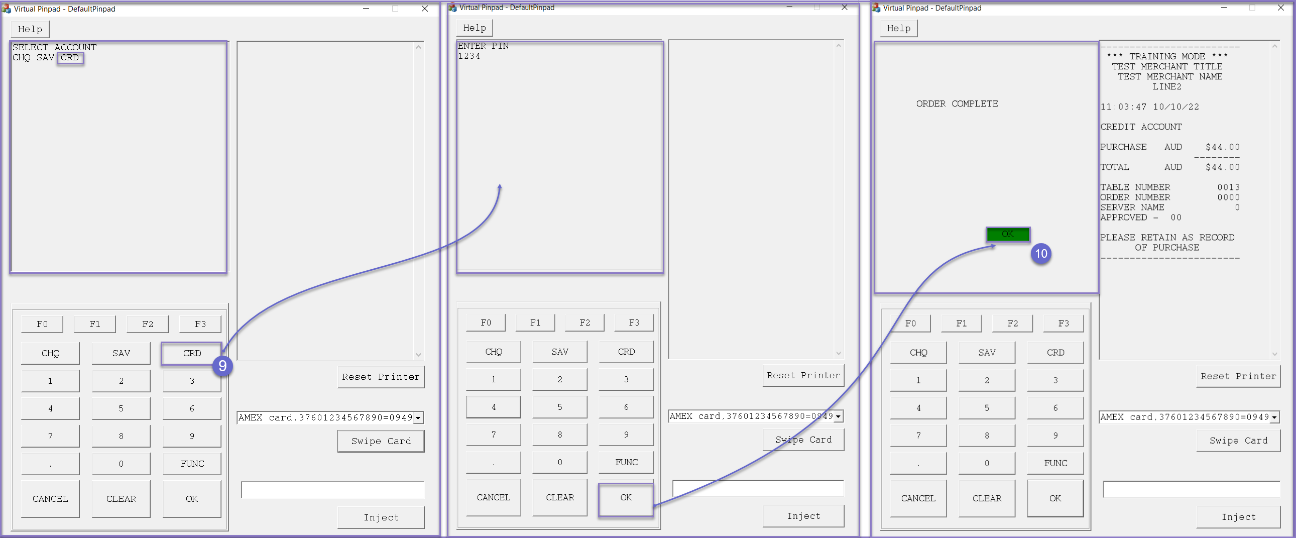 - Once the payment is processed, it shows as 'Order Complete' on the PINPad, and a receipt is printed with the payment details