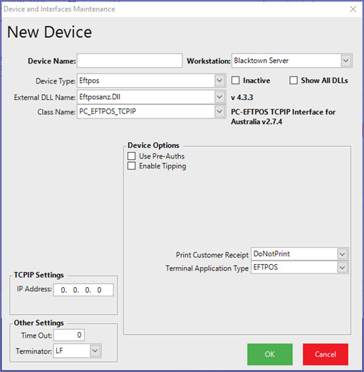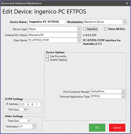 - IP Address: IP Address of the PC-EFTPOS Client; if the client is installed on the local machine then you could set the loopback IP address (eg 127.0.0.1)