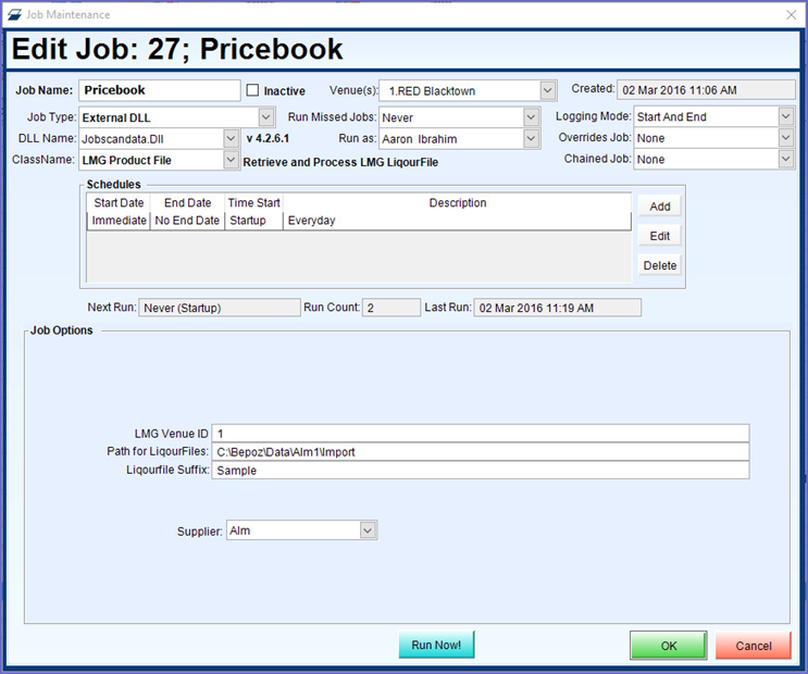- Ensure you set the Run Missed Jobs to "Run Once Only"