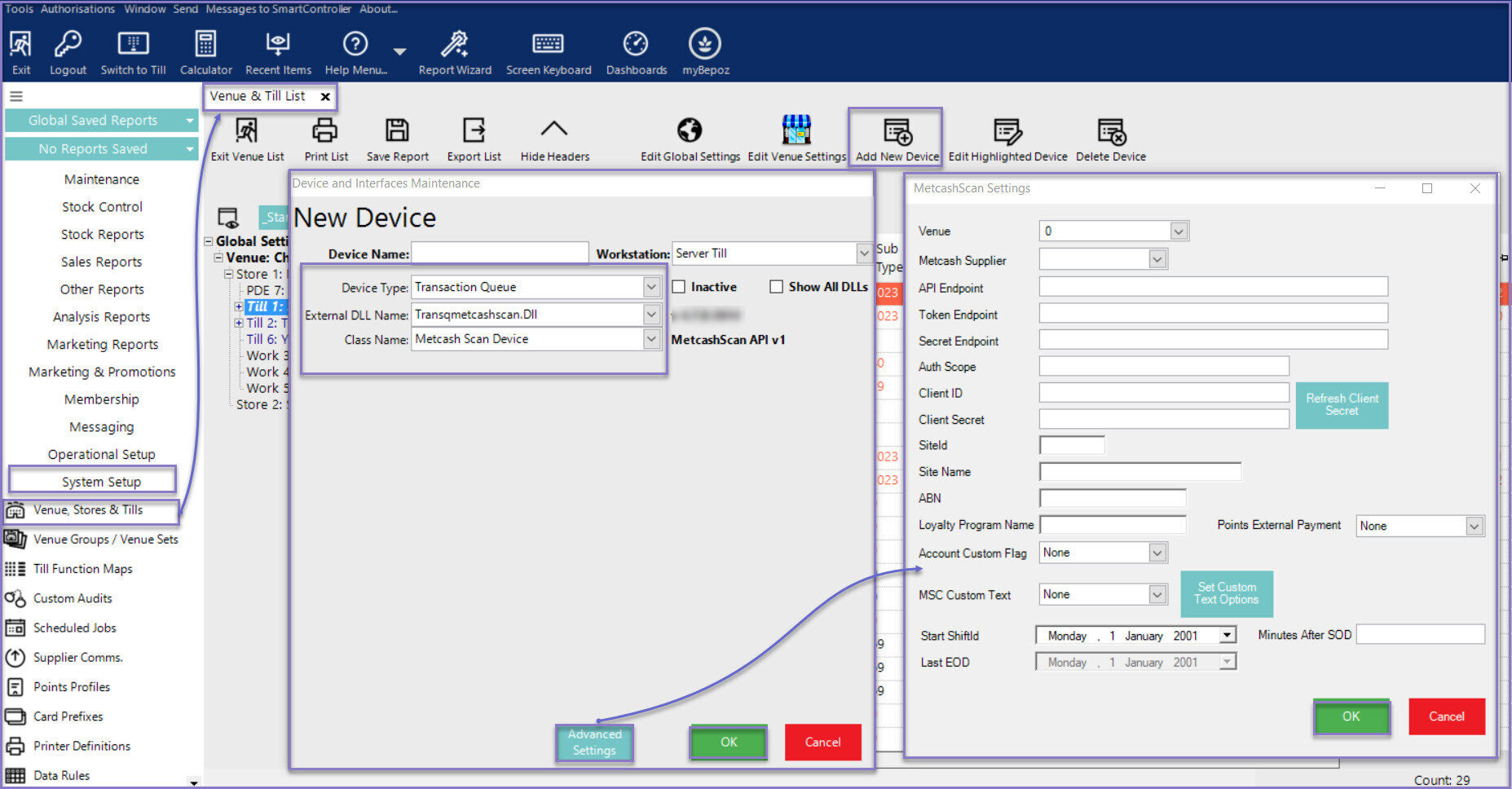 - After logging into BackOffice, complete the following steps to create & configure a Metcash Scan Data Transaction Queue device: