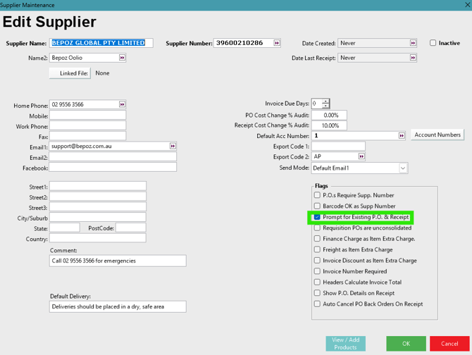 'Prompt for Existing P.O. & Receipt' must be Off [unflagged]