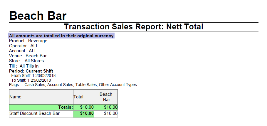 - When this flag is disabled, all monetary amounts in the Report will be in the Venue's Local Currency