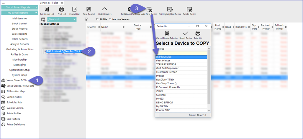 - From the Venue list, select the desired Till that you would like to add the interface & Devices to