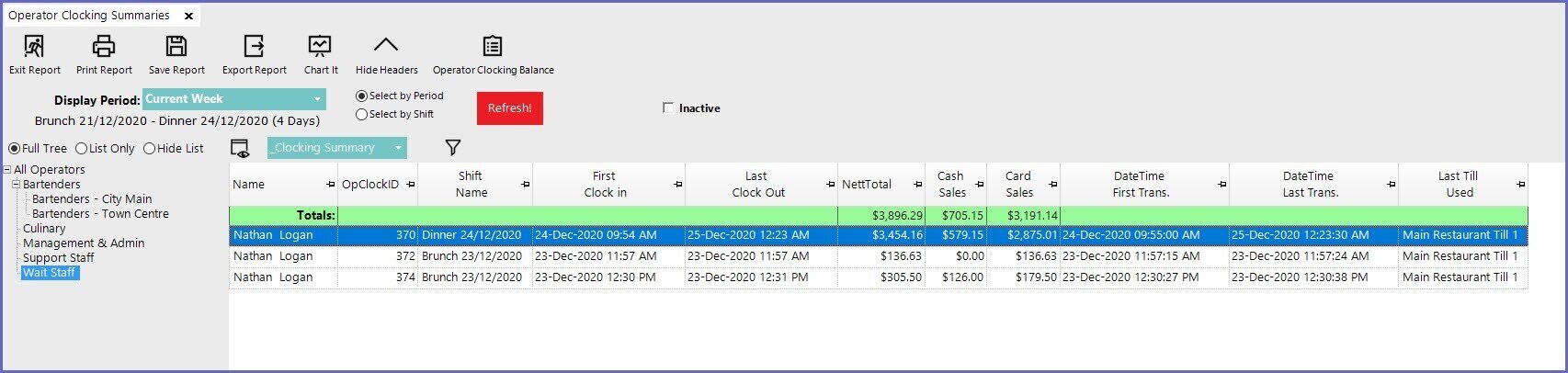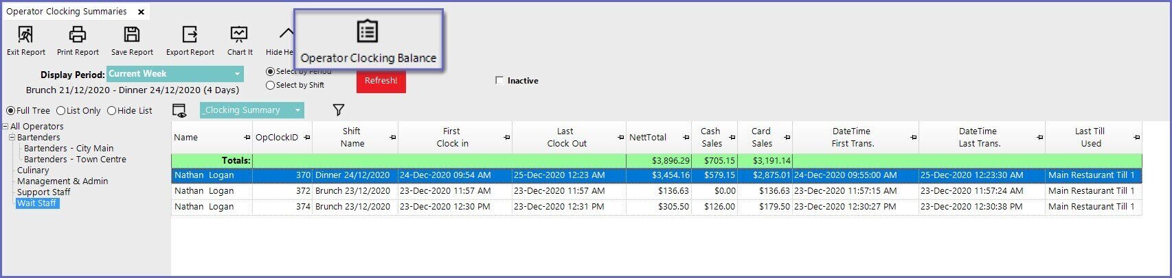 - Select Operator Clocking Summaries which will open a new Operator Clocking Summaries Window