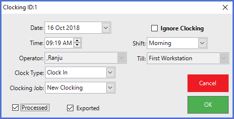 - Double Clicking any line from the report opens up a window from where Operators can edit the Clocking details
