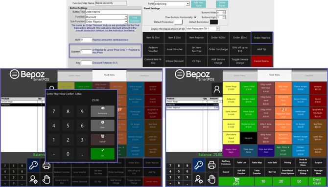• Order Reprice - like Order Discount - allows Operators to apply a discount on the total transaction amount except that it prompts for the final transaction amount