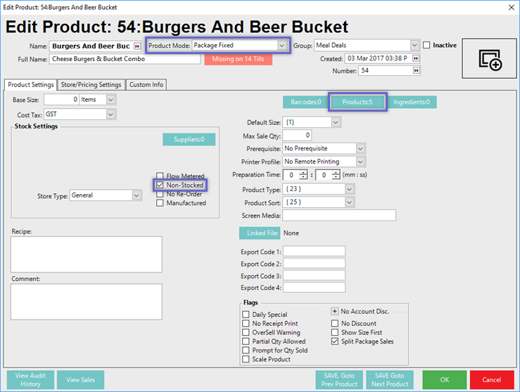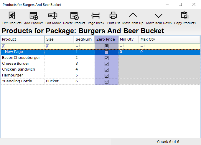 An example of a Package Fixed Product may be a Meal Deal or a Family Banquet option where the Sub-Products will always remain the same.